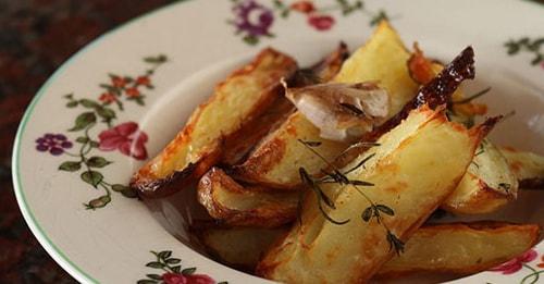 Patatas asadas y crujientes aliñadas con hierbas provenzales y aceite de oliva virgen extra.