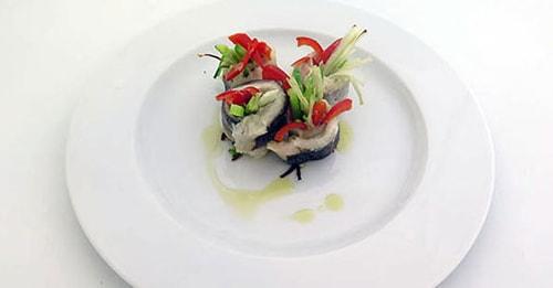 Rollitos de lenguado rellenos de verduras y albahaca, al estilo mediterráneo.